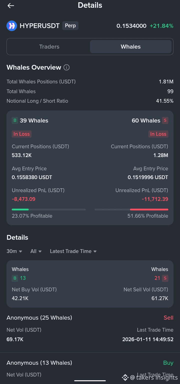 HYPERUSDT perp Whales in the Spotlight: Mixed Signals as Price Pumps +21.84%.