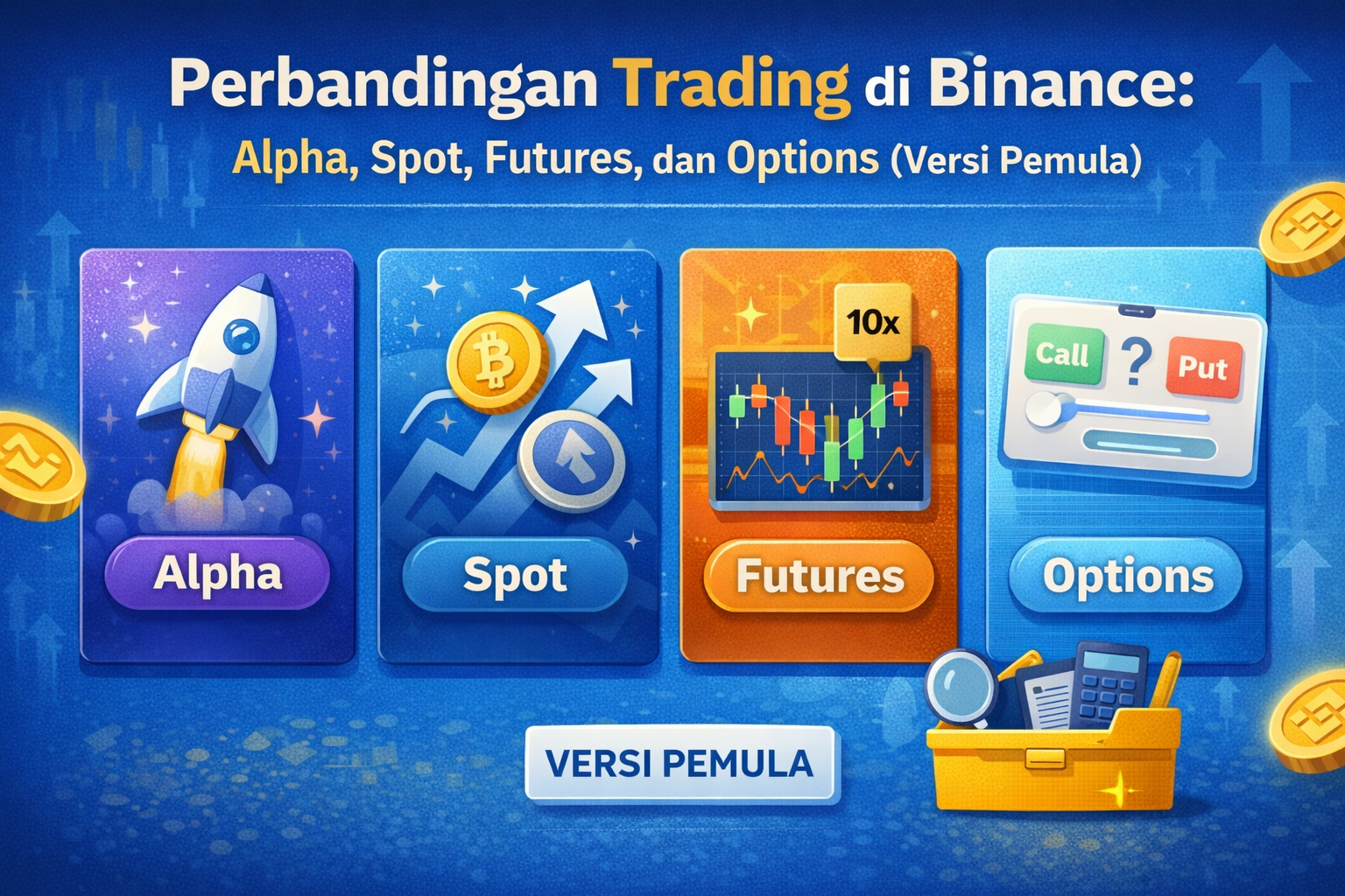 Memilih jenis trading yang tepat sangat bergantung pada tingkat kenyamanan dan pemahaman kamu tentang risiko yang terlibat. Untuk pemula, memulai dengan Spot Trading mungkin adalah langkah yang paling bijaksana, karena memungkinkan kamu untuk mengenal dinamika pasar tanpa harus menghadapi kompleksitas yang lebih tinggi dari Futures atau Options. Setelah kamu merasa lebih percaya diri dan memiliki pemahaman yang lebih baik, kamu bisa mulai mengeksplorasi opsi lainnya dengan lebih mendalam.
