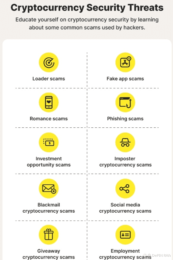 · Investment/Phishing Scams: Unsolicited offers with guaranteed high returns, fake customer support agents asking for your seed phrase, or cloned websites.