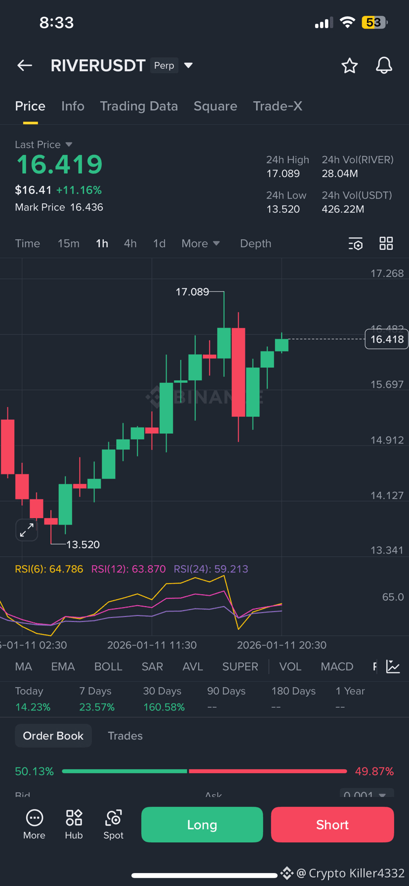 $RIVER has gained momentum after holding the 15.50 support zone, showing strong buying interest. Price action suggests continuation toward near-term resistance levels.