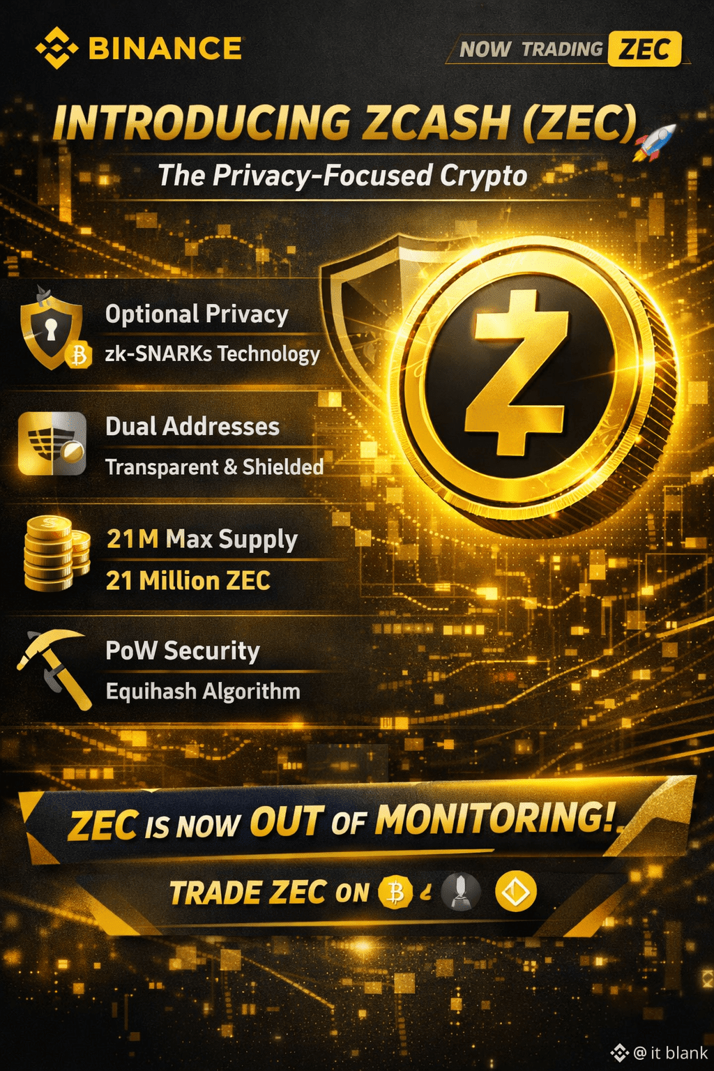 📣 Introducing Zcash (ZEC) on Binance — The Privacy-Focused Crypto! 🚀