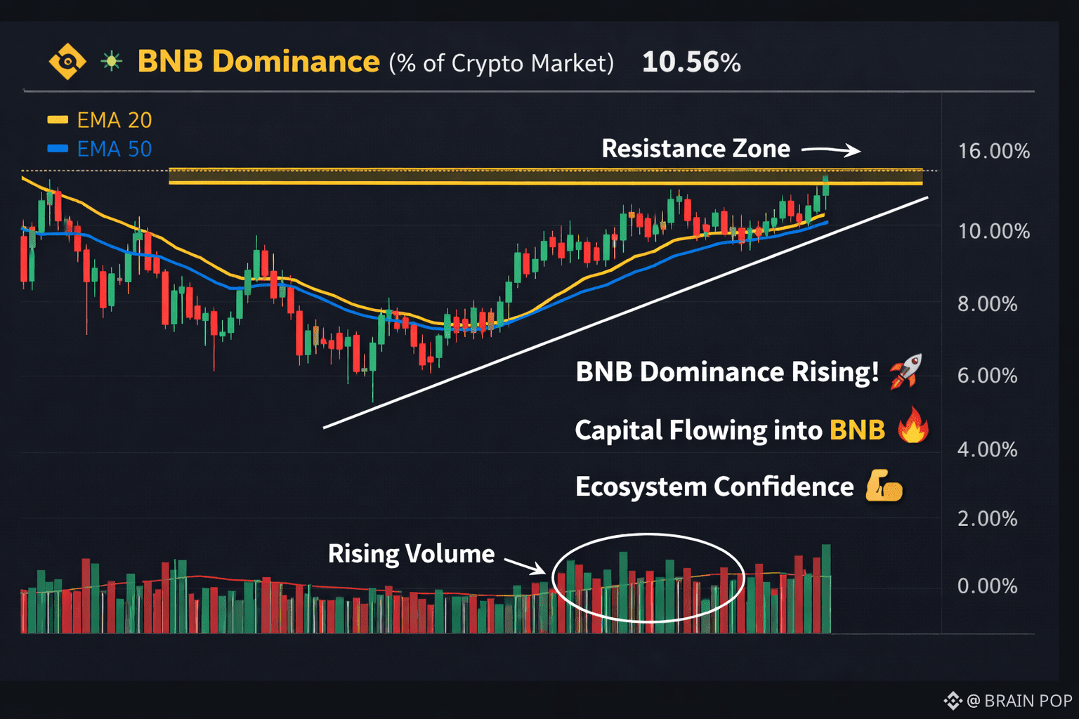 📈 Rising Dominance → BNB gaining strength vs market