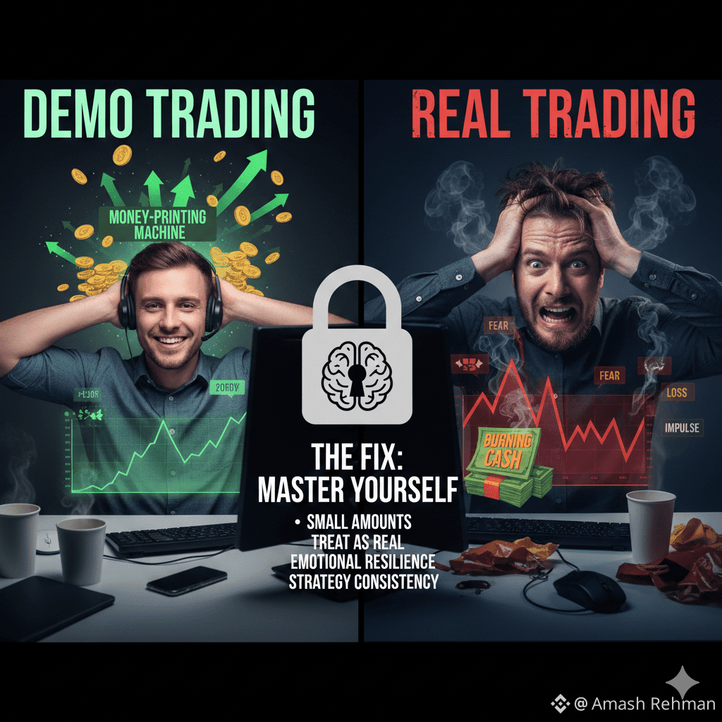 Markets react to real money differently. Liquidity, slippage, and timing can affect your trades. In a demo, every trade executes perfectly, real markets are messier.