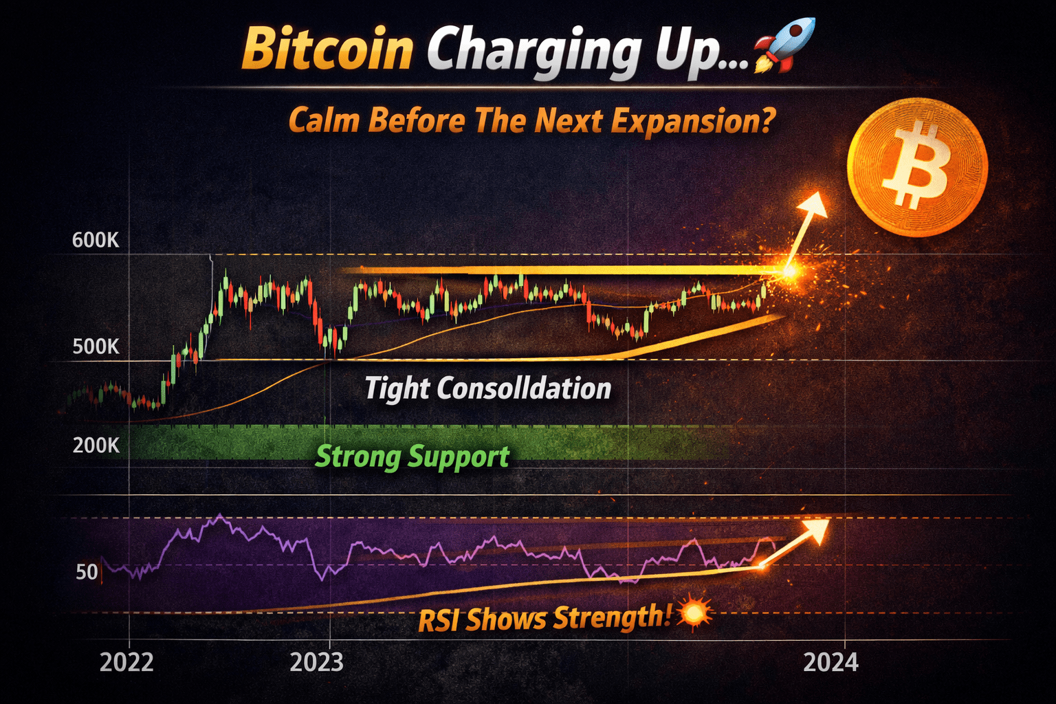 AprÚs un mouvement impulsif fort, Bitcoin est entré dans une zone de consolidation étroite. Ce type d'action du prix indique généralement une accumulation, et non la fin d'une tendance.
