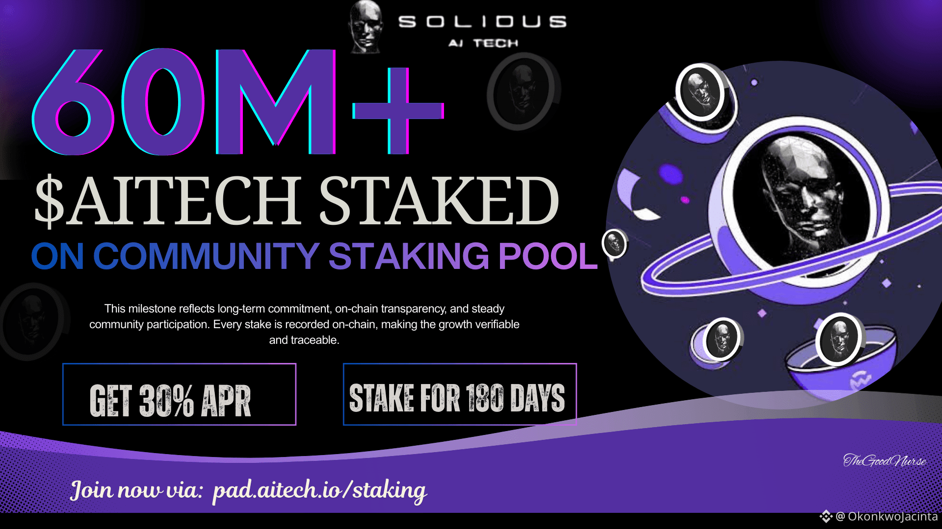 Recently, the @AITECH community crossed a notable milestone, over 60 million $AITECH tokens are now staked in the Community Staking Pool. This didn’t happen overnight. It has been building steadily for a while, and interestingly, the number keeps growing day after day, even in a challenging market environment. That alone makes the story worth exploring.