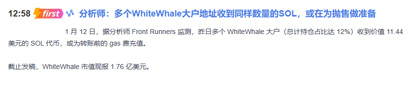 Aujourd'hui, un signal clé a été ignoré par beaucoup : les analyses sur la chaîne montrent qu'un grand investisseur WhiteWhale détenteur de plus d'un million de dollars a reçu simultanément, dans son adresse, un transfert de jetons SQL de montant minime, presque négligeable.