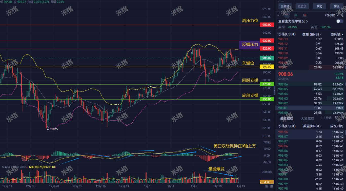 La probabilité que le BNB fasse une rebond après un creux ce soir jusqu'à demain est plus élevée que celle d'un effondrement direct. Les géants veulent gagner de l'argent en faisant déclencher la panique sur le marché et en provoquant des ventes massives. Mais si 897 est fermement maintenu, la force des vendeurs s'épuisera, et le rebond pourrait être très rapide, avec pour objectif 920-930. 950 est une zone de pression élevée, difficile à franchir lors du premier contact.