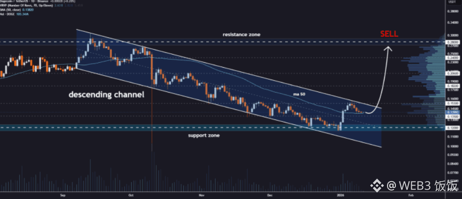 上方:如果价格突破0.14美元附近的50日均线,可能吸引更多买家,带动进一步上涨。