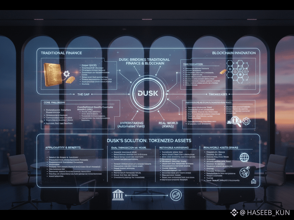 I didn’t come to the idea of tokenized assets through hype or headlines. I came to it through frustration. Years of watching traditional finance struggle with slow settlement cycles, fragmented infrastructure, and layers of intermediaries made one thing clear to me: the system works, but it works inefficiently. At the same time, I watched blockchain promise efficiency and transparency, only to fall short when real regulation and institutional requirements entered the picture. Somewhere between these two worlds—traditional finance and blockchain innovation—there was a gap that neither side could fully bridge. That gap is where I believe Dusk quietly positions itself.