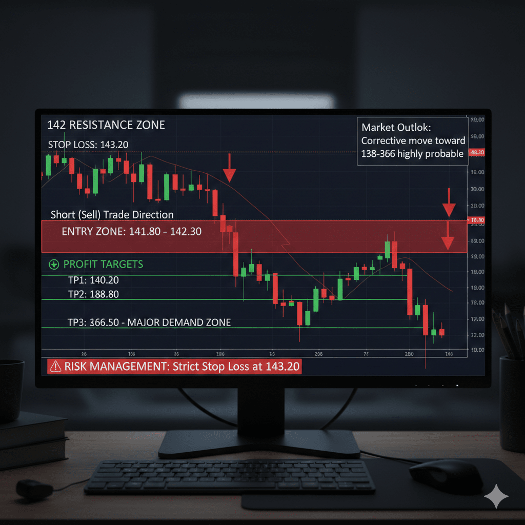 Si le prix ne parvient pas à rester au-dessus de 142, cela signalerait une perte de momentum haussier. Dans un tel scénario, un mouvement correctif vers la zone de demande 138–136 devient très probable. Cette zone a historiquement attiré les acheteurs et pourrait agir comme un plancher temporaire.