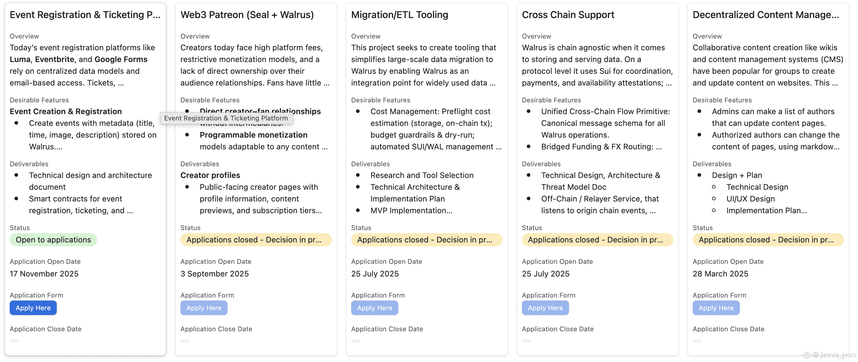 Teams must demonstrate a realistic development plan, clear milestones, and the ability to ship. Walrus values builders who can move from idea to production.