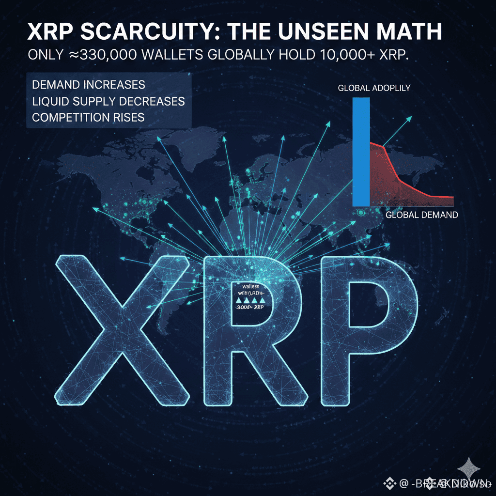 According to on-chain data, only around 330,000 wallets globally hold 10,000 XRP or more. That’s not a guess or a theory — it’s a measurable blockchain statistic.