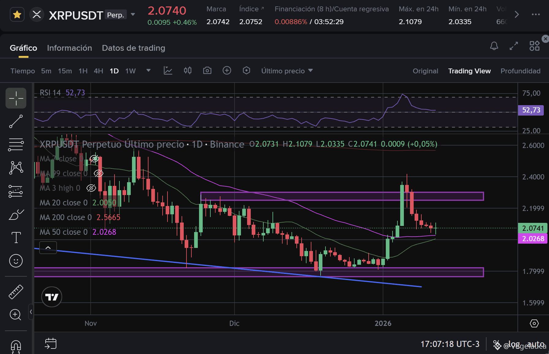 El mercado de XRP ha comenzado el Lunes del 12/01/2026 con una volatilidad contenida, cotizando actualmente alrededor de los 2.07 USDT. Mientras el resto del mercado busca dirección, XRP se encuentra en una fase de "tira y afloja" entre noticias fundamentales prometedoras y una estructura técnica que exige precaución inmediata. ¿Estamos ante una oportunidad de compra en soporte o el inicio de una caída mayor?