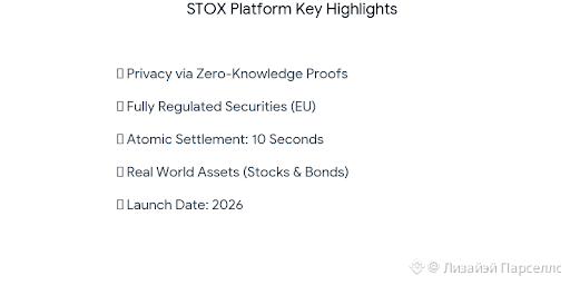 STOX platform rolls out in 2026. Real stocks. Real bonds. Real regulatory approval. Atomic settlement in 10 seconds through DuskDS while maintaining privacy through zero-knowledge proofs.