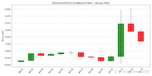 DOLO Candlestick Chart (Jan 1 – Jan 13, 2026)