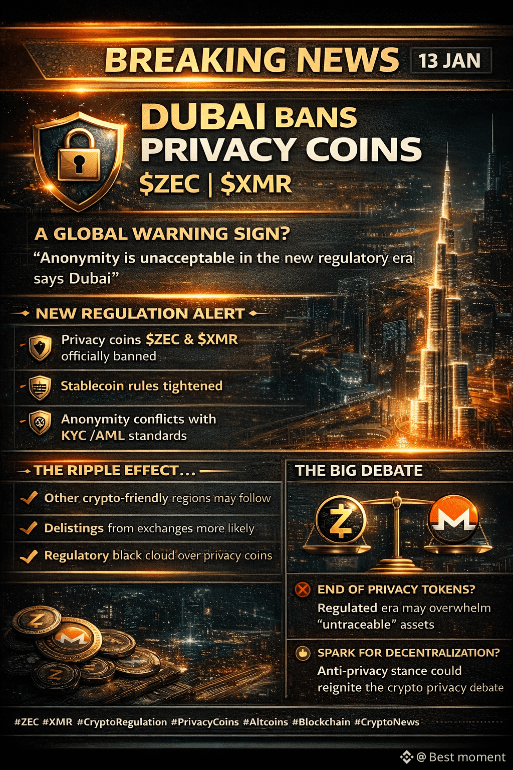 🛡️ $ZEC | $XMR — Dubai Bans Privacy Coins