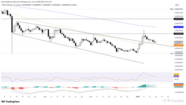 تحوم شيبا إينو فوق المتوسط المتحرك الأسي لمدة 50 يومًا عند 0.00000834 دولار، مستقرًا بعد الانخفاض الذي استمر سبعة أيام. في وقت كتابة التقرير، تتعافى SHIB قليلاً يوم الثلاثاء، بعد أن اقتربت تقريبًا من إعادة اختبار اختراق نمط قناة هبوطية.