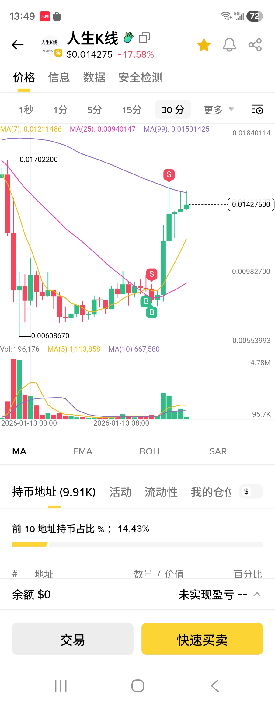 J'ai fait une petite opération hier en vendant mes gains. Aujourd'hui, j'ai vu que « la courbe de vie » était dans les trois premiers résultats tendance, avec une certaine proportion de participation de KOL et d'investisseurs avisés, j'ai donc effectué deux opérations opportunes, les gains obtenus ont été utilisés pour un investissement régulier en aster. Bien sûr, je continue à essayer d'arrêter de fumer.