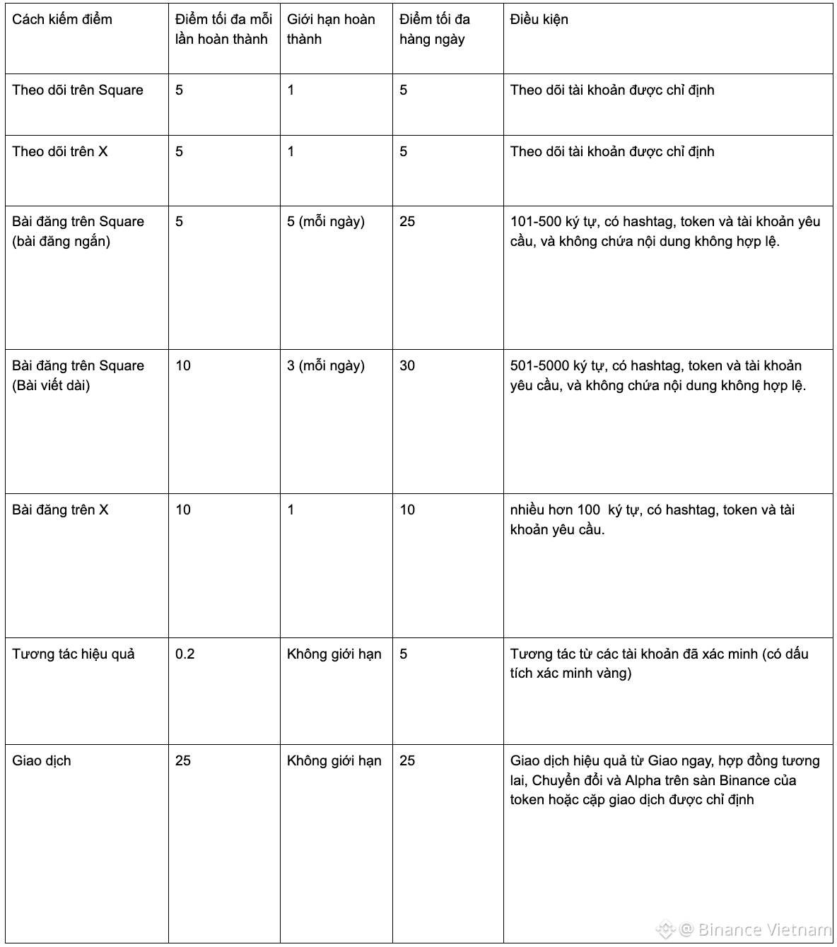 Bạn có thể nhận tối đa 25 điểm mỗi ngày cho mỗi dự án từ các giao dịch hiệu quả bạn thực hiện trên sàn Binance (không bao gồm ví).