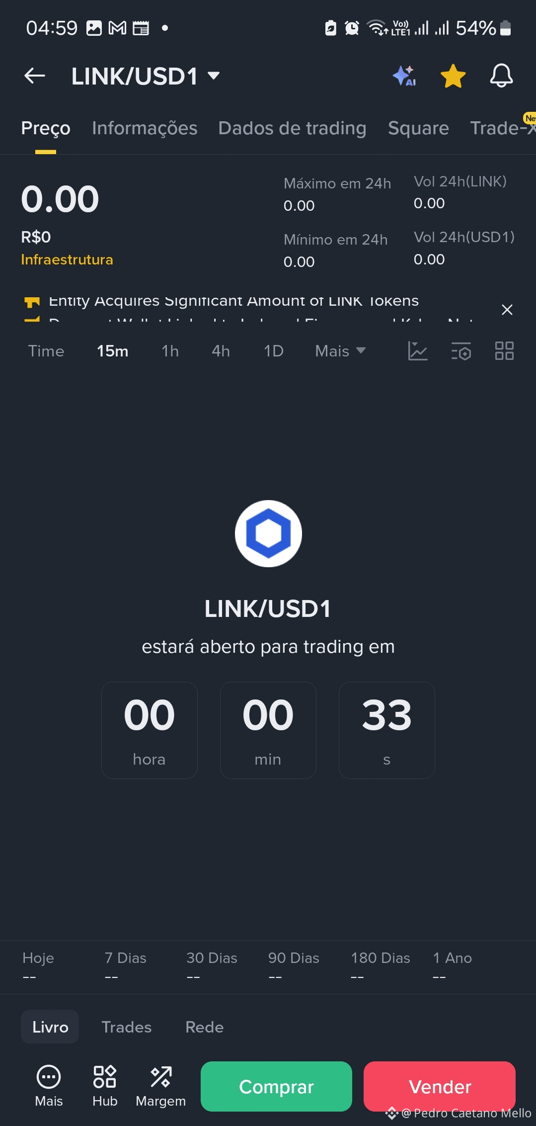 - O par LINK/USD1 está em modo de pré-lançamento, com o trading programado para começar em instantes — o cronômetro já está quase zerando! ⏱️