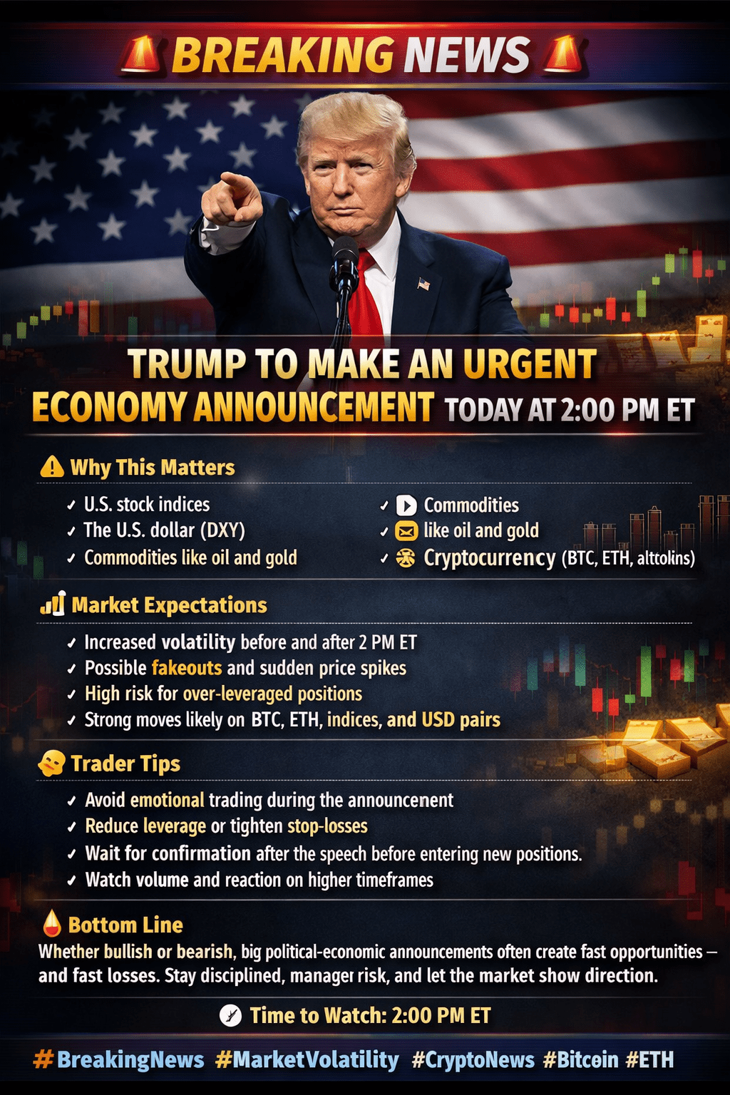 $TRUMP VA FAIRE UN COMMUNIQUÉ ÉCONOMIQUE URGENT AUJOURD'HUI À 14H00 HE