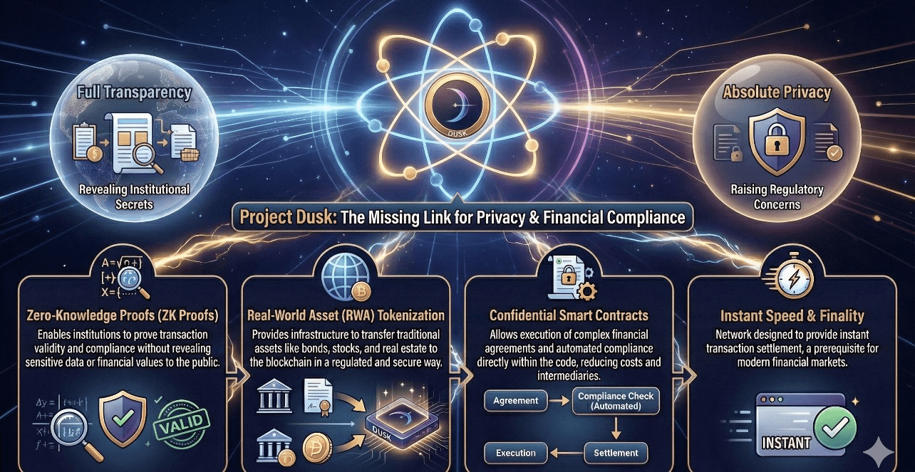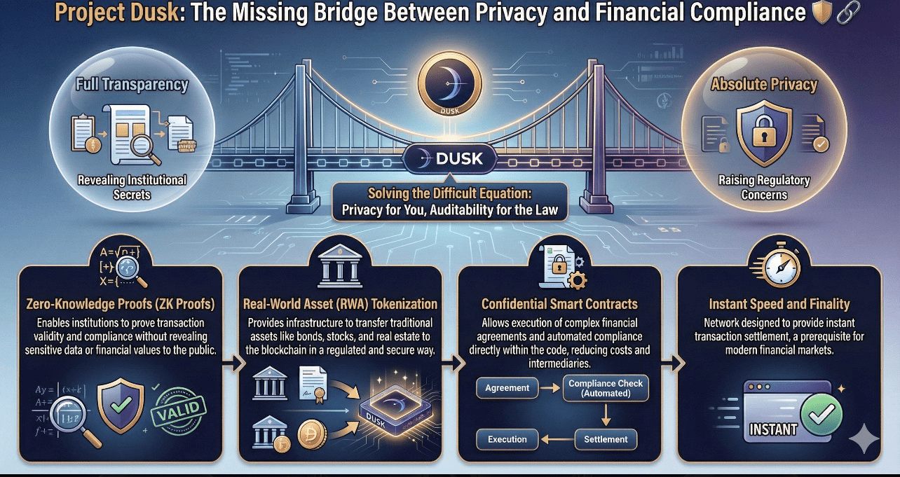 Le problème avec la plupart des blockchains aujourd'hui est simple — elles promettent soit une transparence totale, soit une décentralisation complète, mais les institutions financières réelles ne peuvent pas fonctionner de cette manière. Les banques et les fonds ne peuvent pas exposer les données clients ou les stratégies internes sur une blockchain publique, et pourtant elles souhaitent l'efficacité et l'automatisation promises par la blockchain. Dusk a été conçu pour résoudre exactement cette tension.