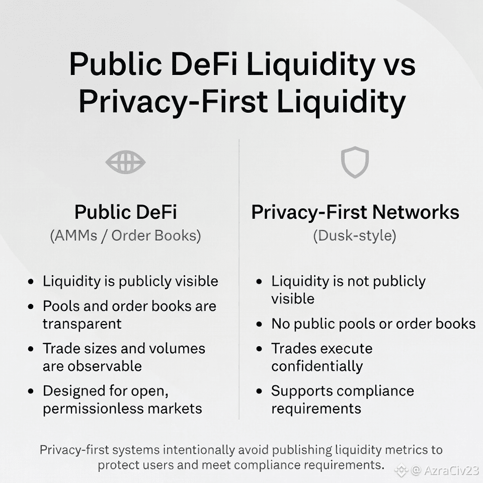 Normally, liquidity is obvious - pools, order books, visible depth. But on Dusk, everything is confidential. You can’t just expose balances and orders if the goal is privacy and regulatory compliance at the same time.