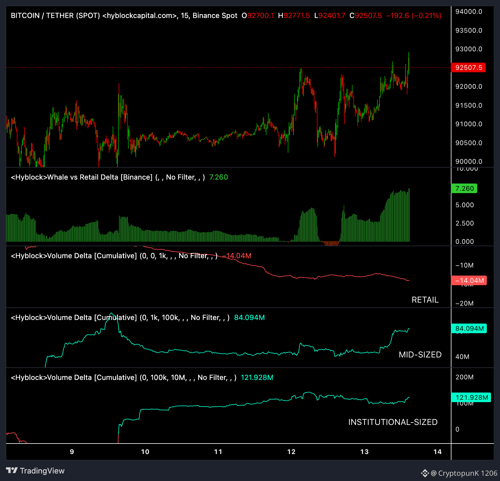 We are witnessing a "Great Hand-Off." As Bitcoin takes its third crack at the $94,000 psychological resistance today, the tape shows a clear aggressive green delta. However, the most telling part of this move isn't the price—it's who is doing the buying.