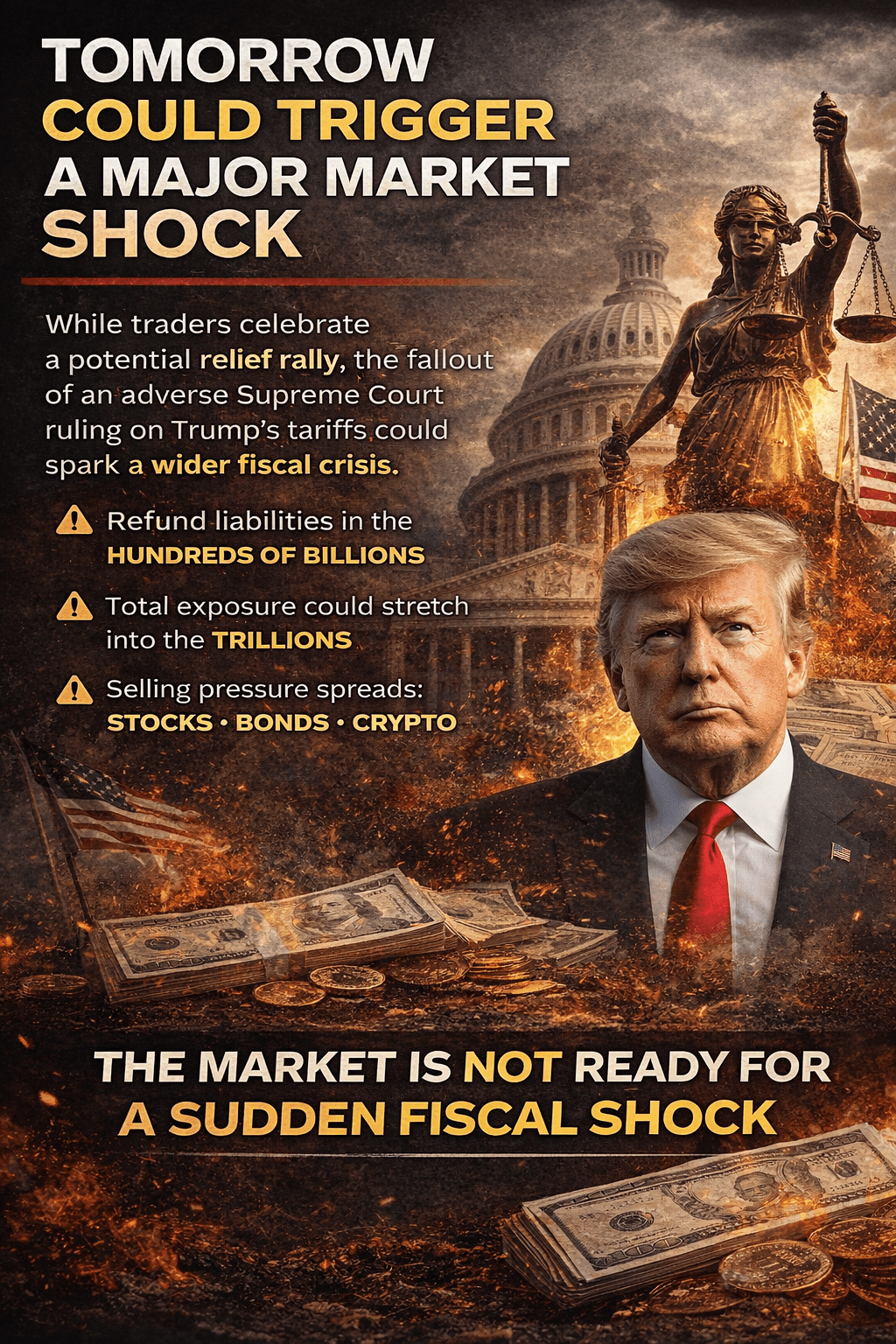 La décision de la Cour suprême de demain sur les tarifs de l'ère Trump pourrait marquer l'un des moments les plus volatils de 2026. Bien que de nombreux traders considèrent ce jugement comme une opportunité de rebond, la réalité pourrait être bien plus sombre.