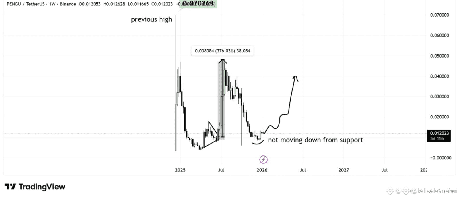 الشيء الأكثر أهمية هو ملاحظة أن PENGU لا يتحرك للأسفل من مستوى الدعم.
