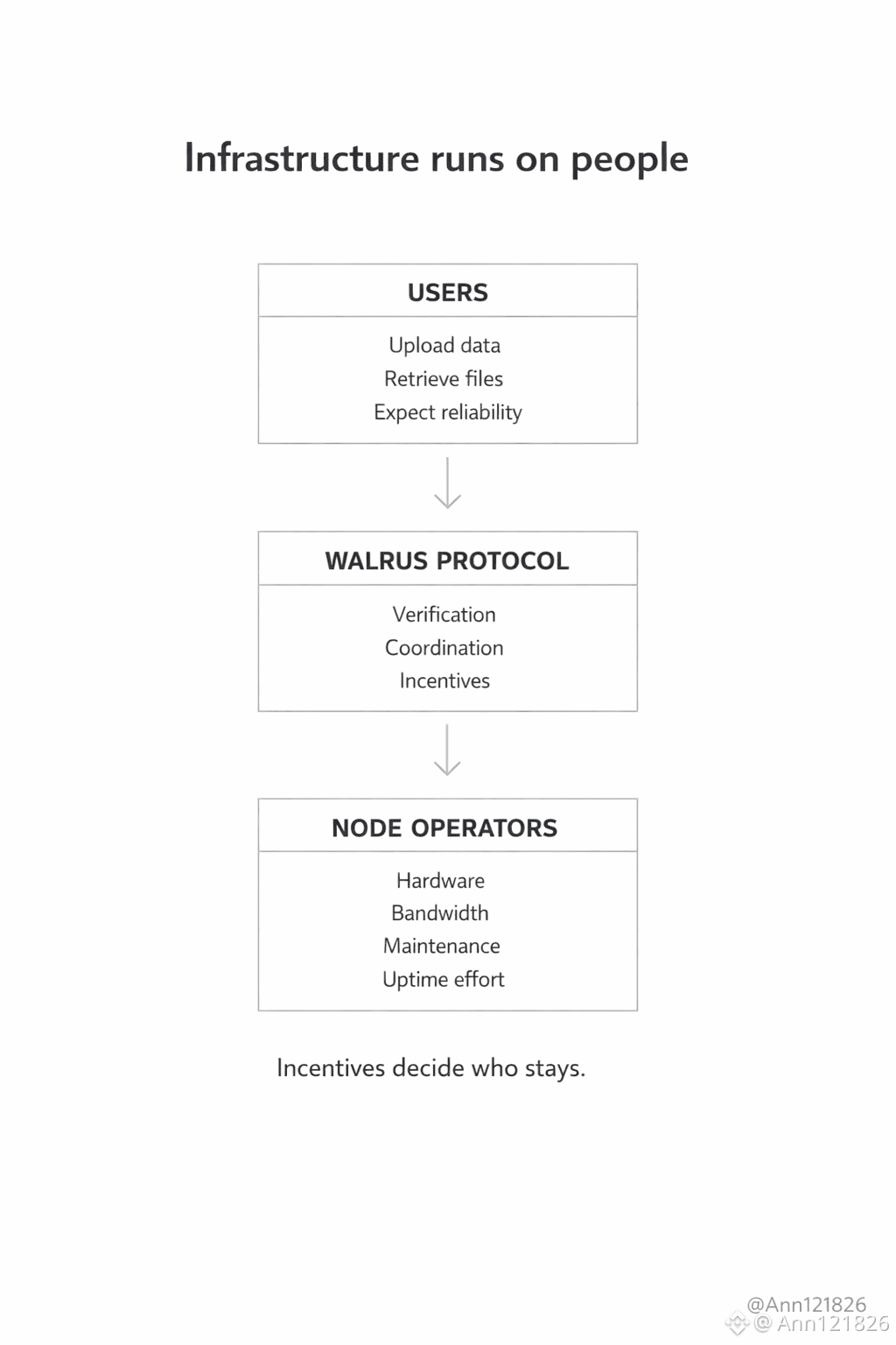 Walrus parte de una premisa directa: la descentralización tiene un costo permanente. El sistema depende de operadores que participan porque existe una relación clara entre esfuerzo y compensación. Sin ese equilibrio, la red no se vuelve insegura de inmediato, simplemente se vuelve menos atractiva para quienes la sostienen.