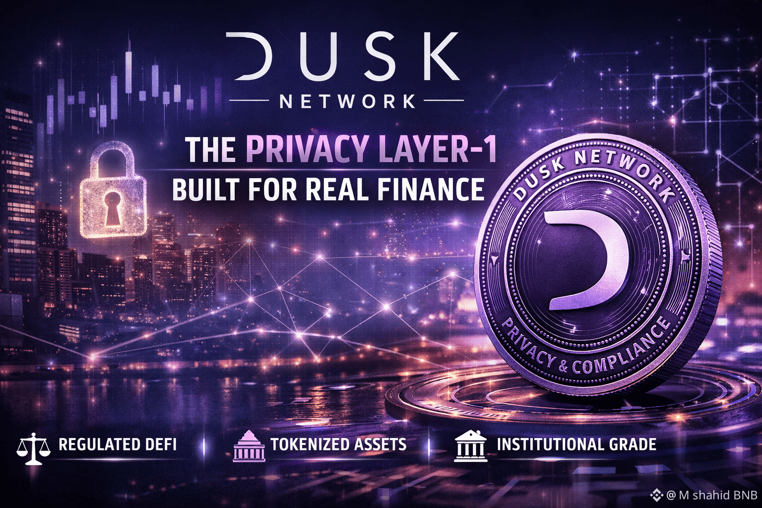 @Dusk_Pride Network (DUSK) is a next-generation Layer 1 blockchain founded in 2018, created specially for regulated and privacy-focused finance. Unlike normal blockchains that only focus on speed or hype, Dusk is built for serious institutional use — where privacy, compliance, and auditability matter the most. This makes it a strong choice for financial companies that want blockchain benefits without breaking legal rules.