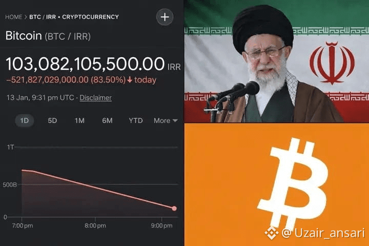 Le Bitcoin monte très rapidement en Iran 🇮🇷 — non pas parce que le Bitcoin est soudain devenu plus précieux, mais parce que la monnaie iranienne s'effondre.$BTC