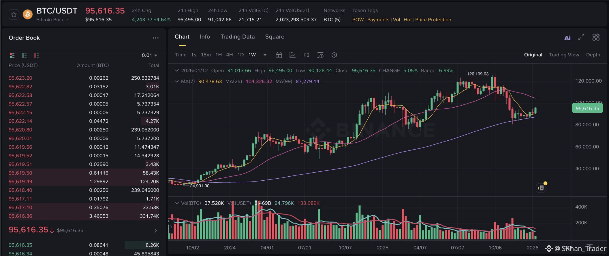 BTC broke out of its $88.5K–$95.5K range. Holding above $94K–$95K could open $98K–$100K next 🎯. Support sits near $91K and $89.8K. Futures positioning is improving, though volumes remain controlled.