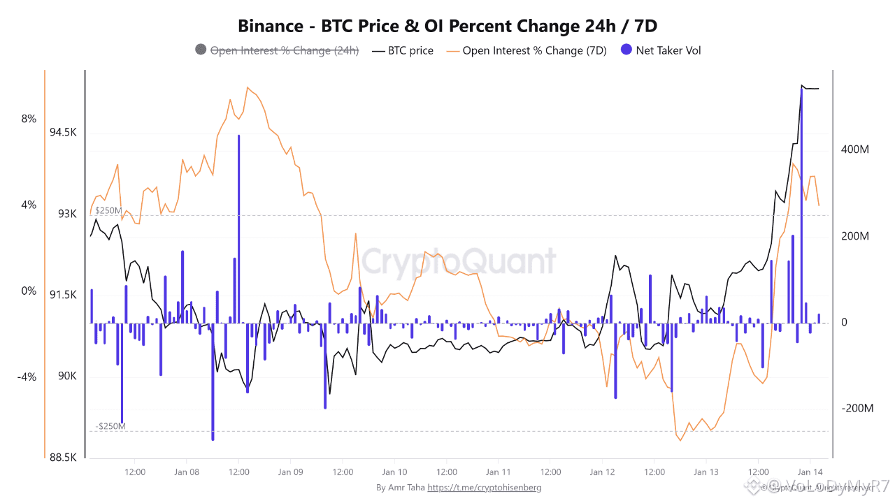 📊 Binance - Ціна BTC та зміна обсягу відкритих позицій 24 год / 7 днів