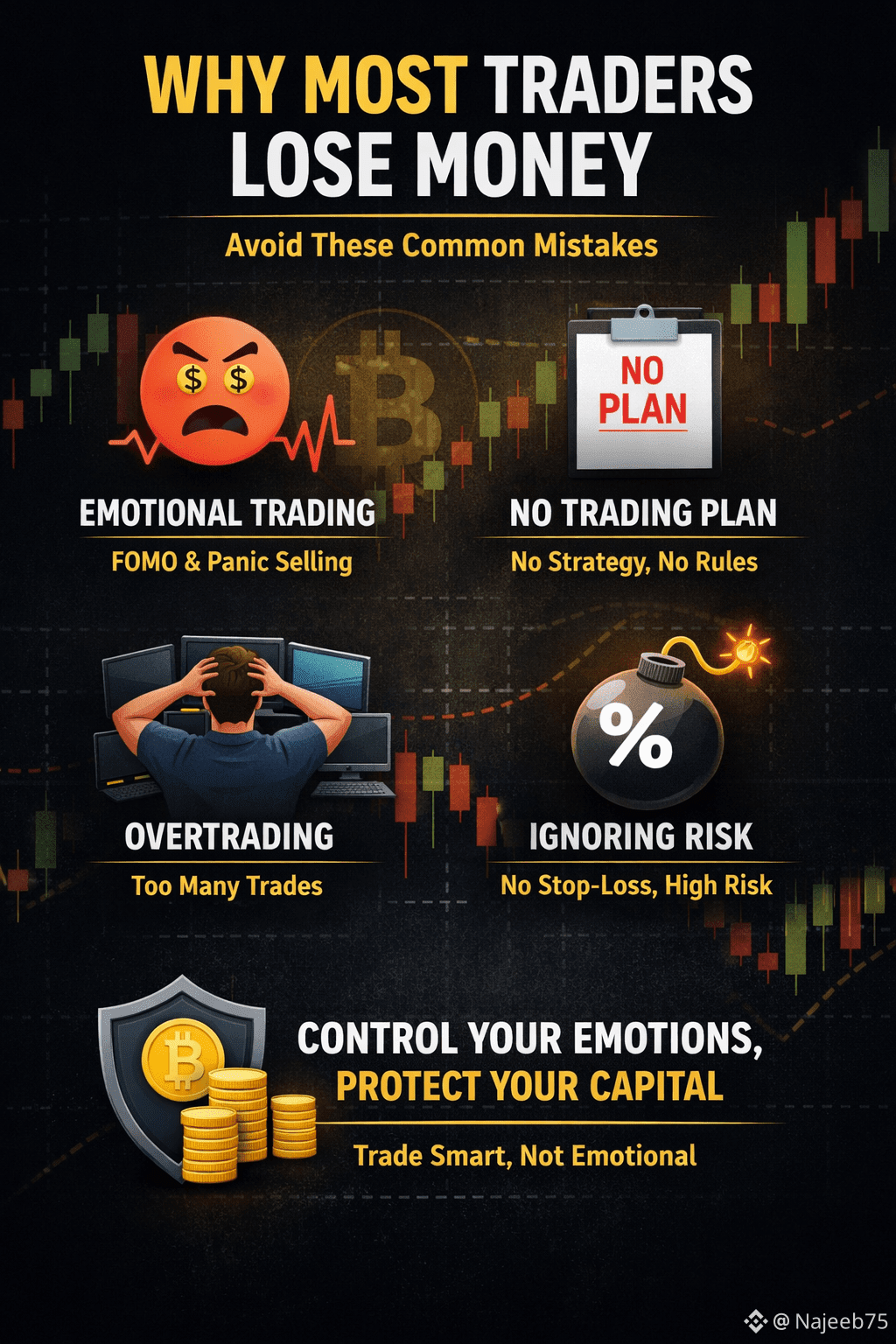 The crypto market offers huge opportunities, but the reality is that most traders lose money. This doesn’t happen because the market is unfair — it happens due to mistakes and emotions.