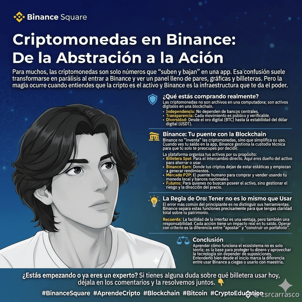 Para muchos, las criptomonedas son solo números que “suben y bajan” en una app. Esa confusión suele transformarse en parálisis al entrar a Binance y ver un panel lleno de pares, gráficas y billeteras. Pero la magia ocurre cuando entiendes que la cripto es el activo y Binance es la infraestructura que te da el poder.