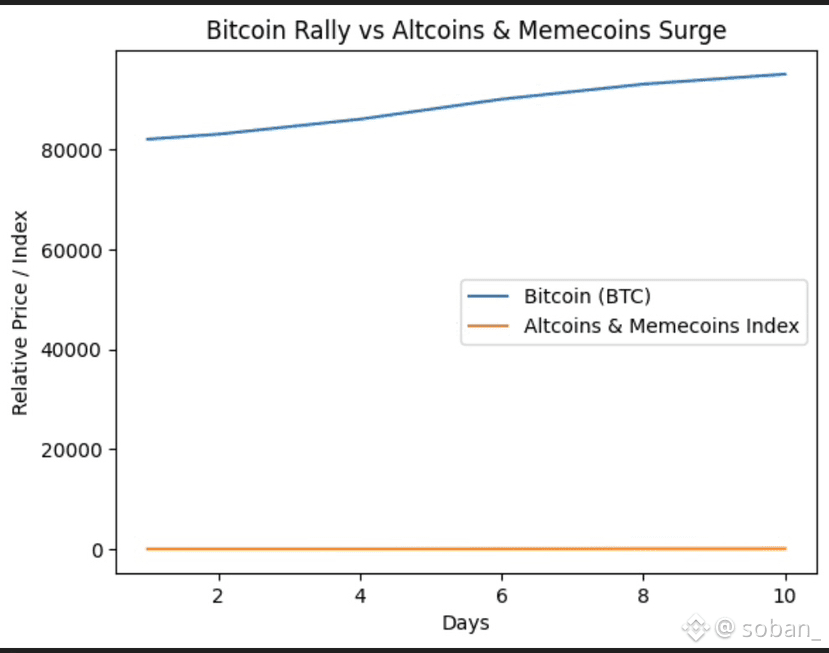 Bitcoinâs powerful move toward the $95K zone has flipped the switch across the entire crypto market â and the result is clear: altcoins and meme coins are on fire đ„. As BTC stabilizes at higher levels, capital is rotating fast into higher-beta assets, creating explosive short-term opportunities.