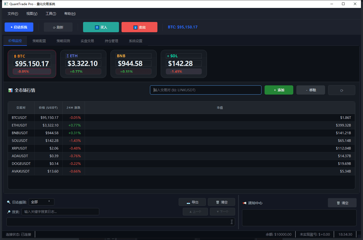 Système de trading quantitatif en cryptomonnaie de niveau professionnel développé en Python et PyQt6, prend en charge :