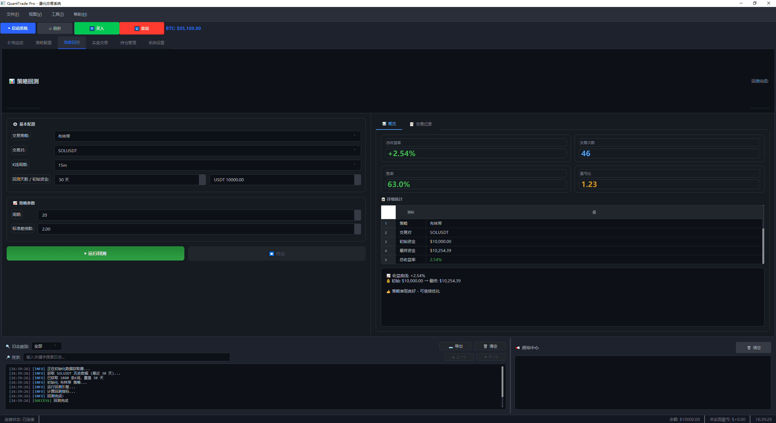 - 📊 Surveillance des prix en temps réel - Données en temps réel de Binance - 📈 Backtesting de la stratégie - Validation des effets de la stratégie avec des données historiques - 💹 Trading automatique - 8 modes de gestion des positions - 🎨 Interface multi-thème - 7 plans de couleurs professionnels - 🔔 Notifications de signal - Telegram/email d'alerte