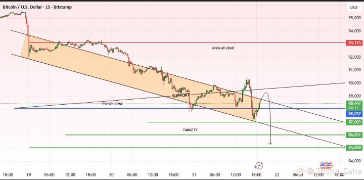 BTCUSD 15m – Retest du canal vers la limite inférieure🚀♂️♂️