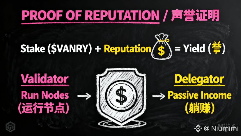 它的共识机制不是普通的 PoS(权益证明),而是 PoR (声誉证明)。这意味着,在这个生态里,钱不是万能的,信誉才是印钞机。今天,我们从“被动收入”的角度,拆解普通人如何利用 PoR 机制,捕获 Vanar 生态的系统性红利。