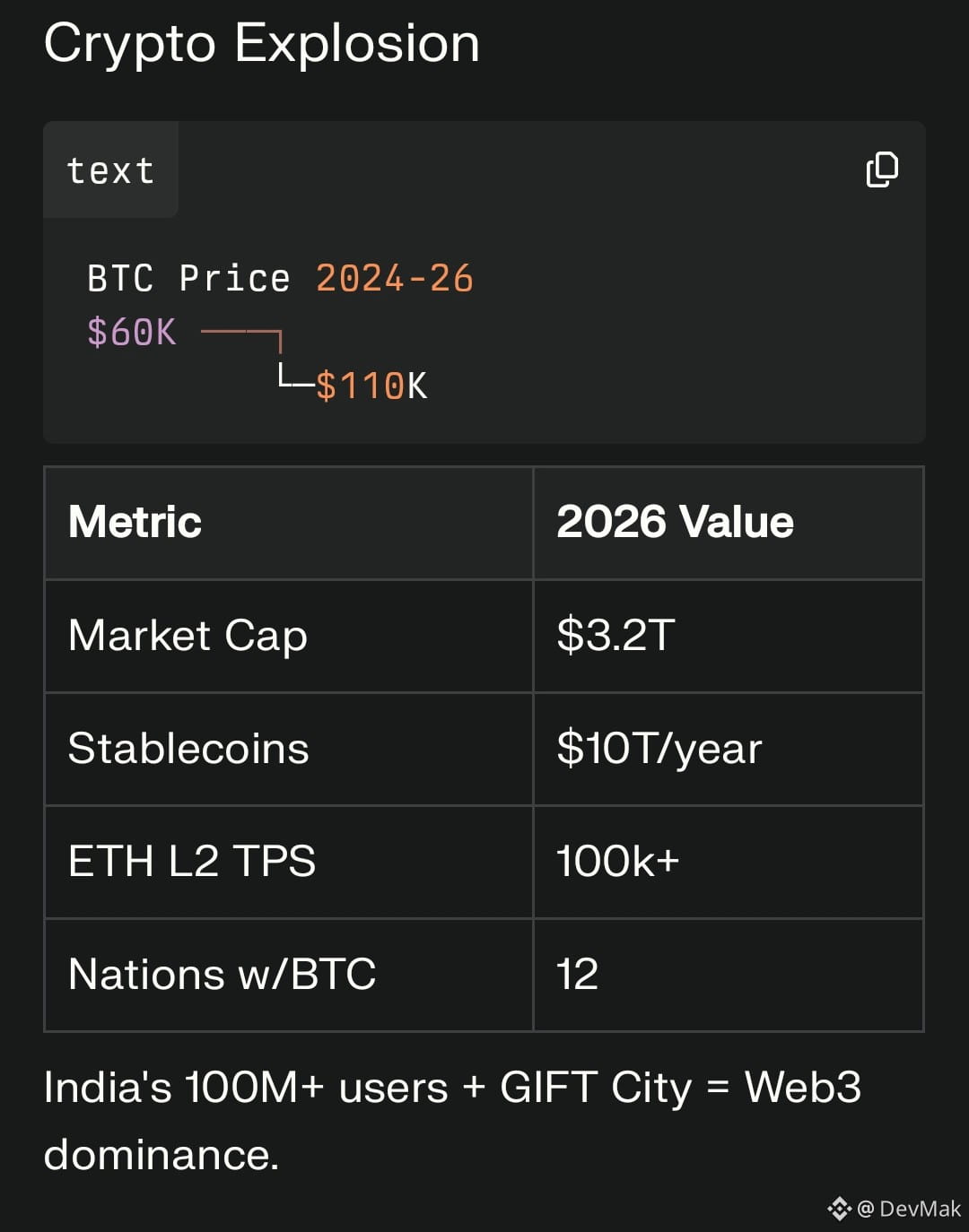 India's LeadershipBRICS member + crypto tax clarityGIFT City: $50B+ Web3 assetsUPI x blockchain = global remittancesAct now: Nations diversify, individuals stack BTC/ETH, India accelerates GIFT City.