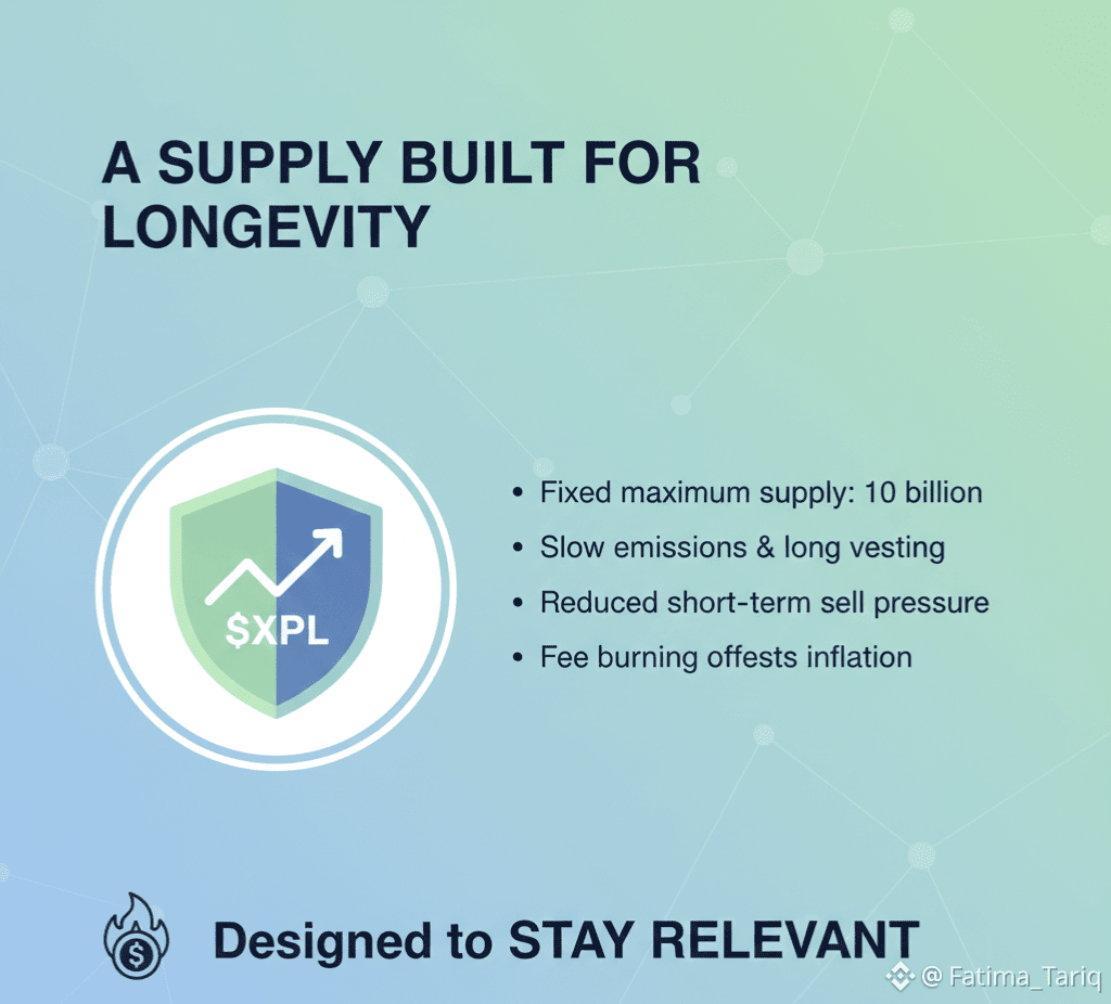 XPL has a fixed maximum supply of 10 billion. Emissions are slow, with long vesting schedules—reducing short-term sell pressure and encouraging long-term participation. Parts of the fee model are burned, helping offset inflation as network usage grows.This isn’t a token designed to spike fast. It’s designed to stay relevant.