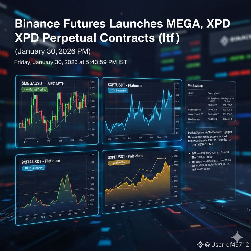 ### **Binance Futures Launches MEGA, XPT, and XPD Perpetual Contracts (January 30, 2026)**