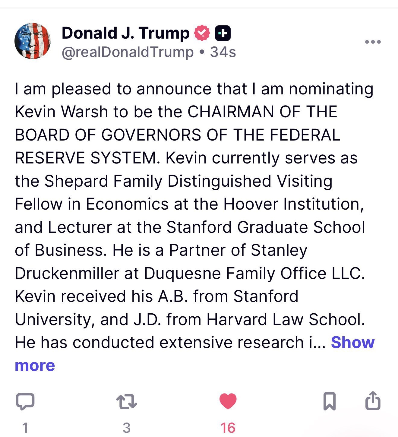 C'est officiel : Kevin Warsh a été nommé président de la Fed.