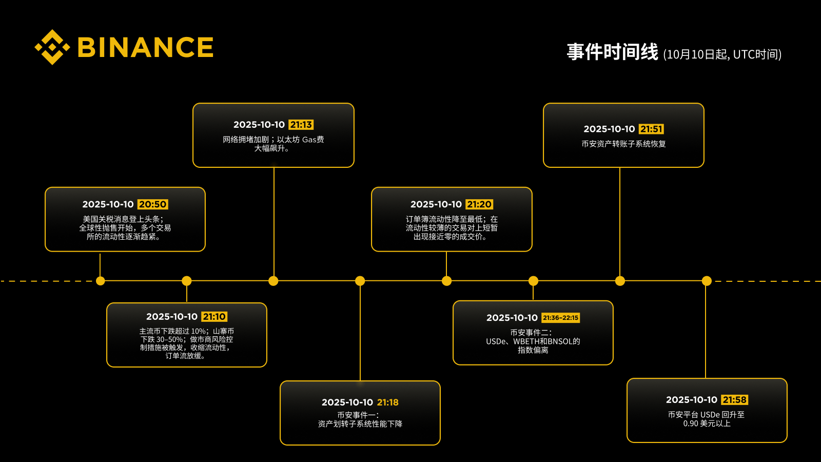 Le 31 janvier 2026, sous l'attention soutenue de la communauté, Binance a enfin publié un rapport détaillé sur "l'événement 1011" (également appelé événement 1010 en raison de la différence entre UTC et le fuseau horaire UTC+8). Ce rapport a effectué une rétrospective complète sur la forte volatilité qui a secoué le marché de la cryptomonnaie mondial le 10 octobre 2025 (heure UTC), révélant les défaillances techniques sur la plateforme survenues dans des conditions de marché extrêmes, le contexte du marché et les mesures de suivi. Cet article proposera une interprétation approfondie en se basant sur les infographies officielles publiées par Binance, en examinant le cœur du rapport, les controverses de l'industrie et les impacts futurs.