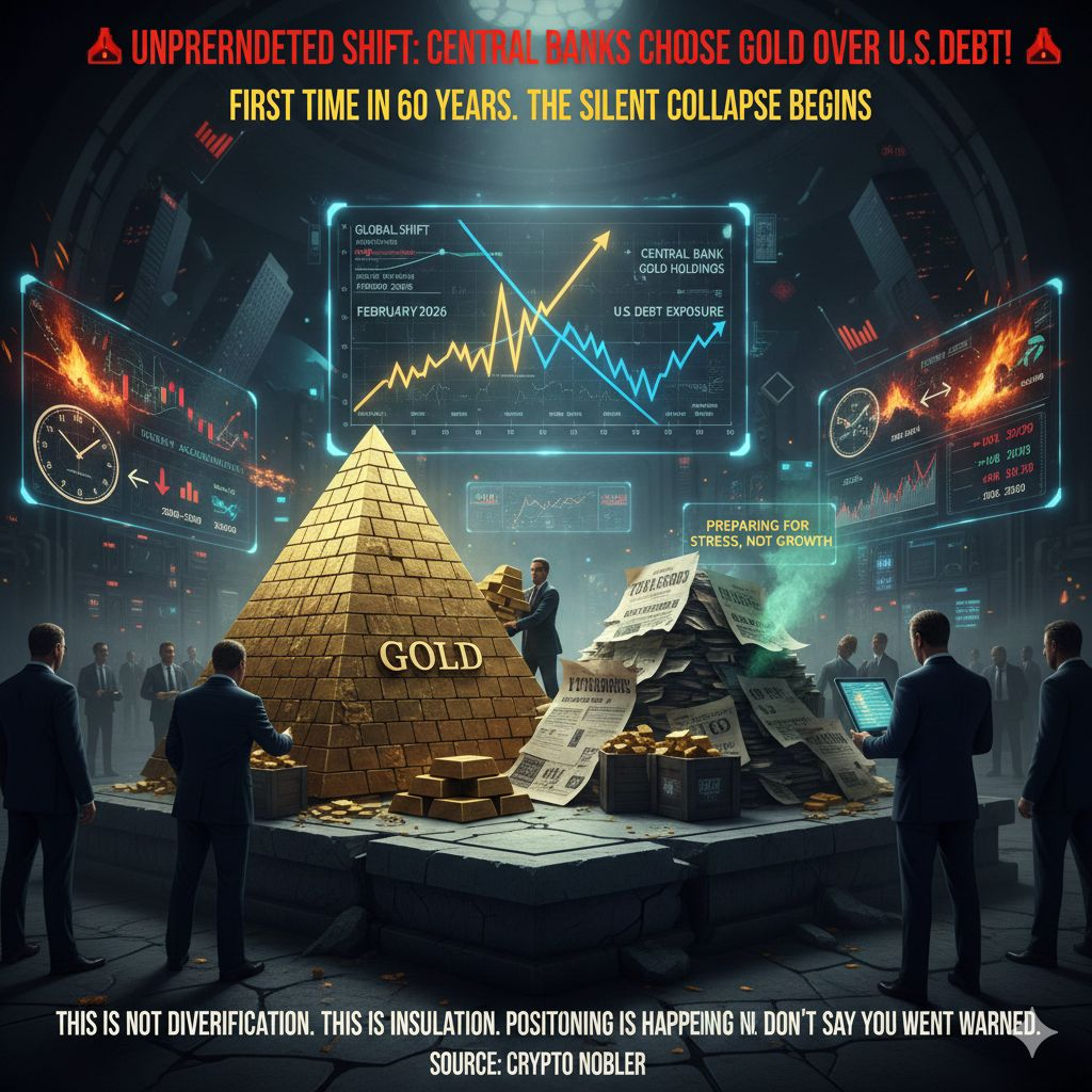 Pour la première fois depuis des décennies, quelque chose de silencieusement historique se déroule sous la surface des marchés mondiaux, et la plupart des gens ne prêtent pas attention. Les banques centrales ne se comportent plus comme le suggèrent les narrations publiques. Alors que les investisseurs sont invités à se concentrer sur la croissance, la diversification et les atterrissages en douceur, les institutions qui se trouvent au cœur du système financier se repositionnent pour le stress. Elles réduisent leur dépendance à la dette souveraine, augmentent leur exposition à l'or physique et se préparent à un monde où la confiance dans les promesses en papier compte moins que le contrôle sur des garanties réelles. Ce n'est pas un signal politique et ce n'est pas un échange à court terme. C'est un changement structurel. Les obligations gouvernementales ont longtemps été l'épine dorsale de la liquidité mondiale, utilisées comme garanties, leviers et soutien de bilan à travers les banques, les fonds et les gouvernements. Lorsque la confiance dans cette épine dorsale s'affaiblit, l'instabilité ne commence pas par la panique ou les gros titres - elle commence par des ajustements de réserve silencieux. L'histoire montre clairement ce schéma. Avant les chocs inflationnistes, les crises de crédit et les gel de liquidité, les institutions agissent en premier. La prise de conscience publique vient toujours plus tard. L'environnement d'aujourd'hui reflète une pression de dette croissante, un resserrement de la liquidité, une incertitude géopolitique et une préférence croissante pour les actifs sans risque de contrepartie. Une fois que les obligations commencent à perdre de la crédibilité, la séquence est prévisible : le crédit se resserre, le stress des marges se propage, la vente forcée s'accélère et les actifs risqués sont réévalués. Les décideurs politiques font face à un chemin étroit - assouplir et dévaluer la monnaie, ou rester strict et fracturer le crédit. Aucun des résultats n'est propre. C'est pourquoi la préparation, et non la spéculation, est en cours. Dans de telles conditions, les actifs conçus pour la rareté et l'indépendance gagnent en pertinence stratégique, y compris $BTC, non pas comme un échange, mais comme une réponse à un système de plus en plus défini par la fragilité. D'ici à ce que ce changement devienne évident pour la majorité, le positionnement sera déjà complet. Certains réagiront. Quelques-uns seront déjà prêts.