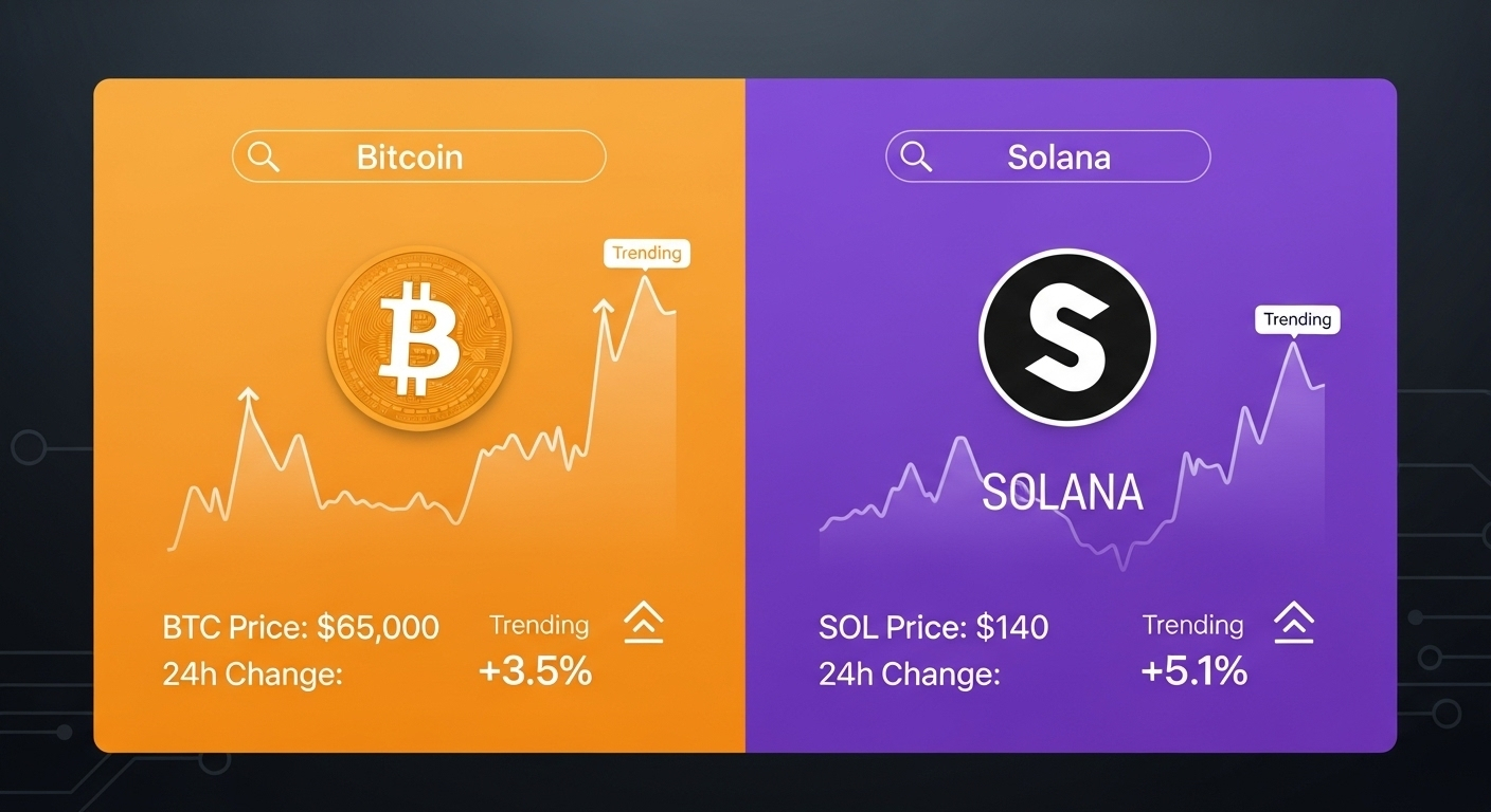 Bitcoin et Solana restent parmi les cryptomonnaies les plus recherchées — un signe que les devises numériques de base captivent toujours une large attention même lorsque les marchés fluctuent.