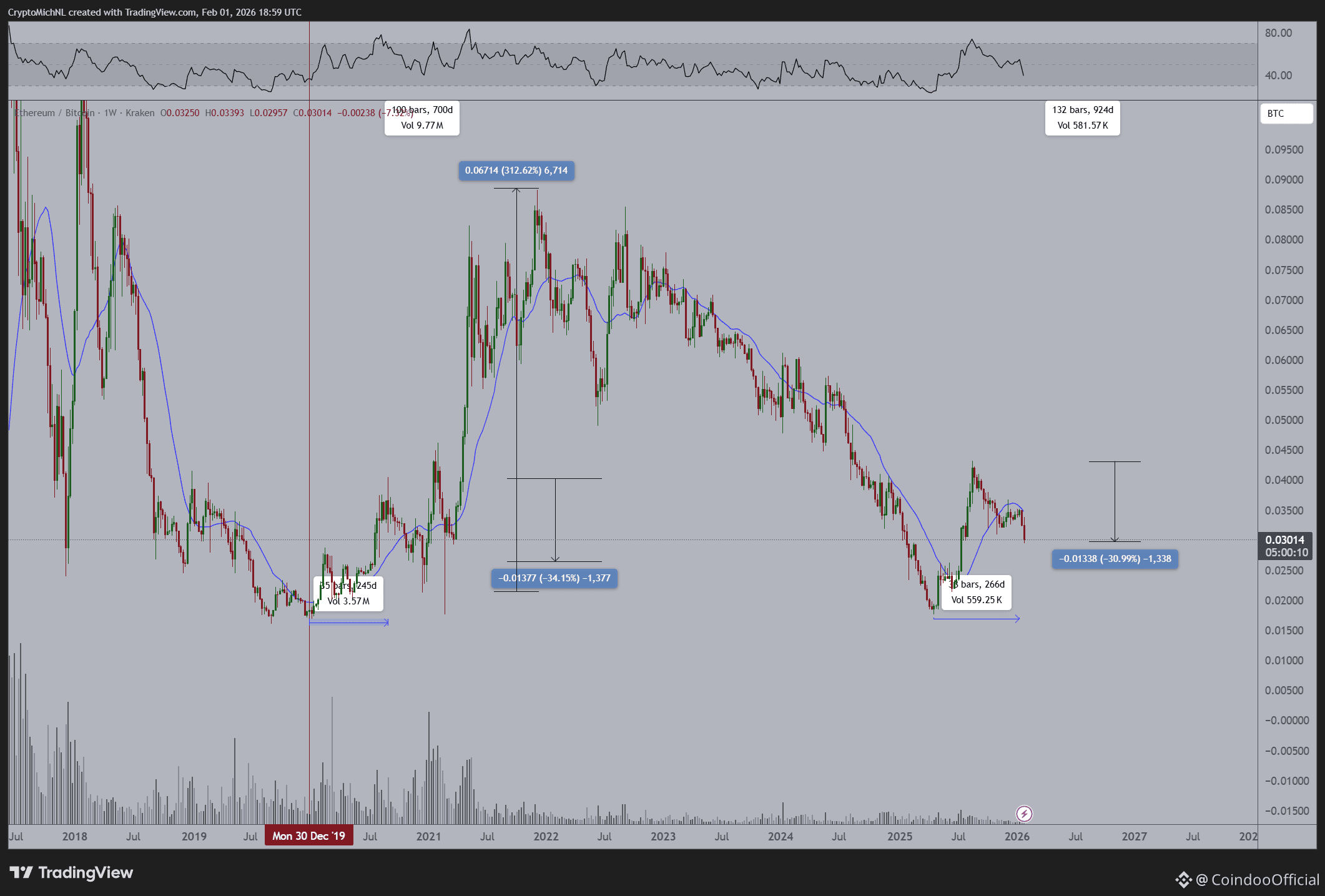 Van de Poppe notes that in the last comparable cycle, Ethereum eventually rallied more than 300% against Bitcoin after completing a deep correction phase. With ETH already down roughly 31% from recent highs and significantly below its all-time peak, he argues that much of the downside risk may already be priced in, assuming broader market conditions stabilize.